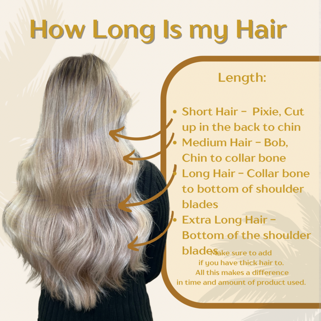 If you have any questions, please ask for a written quote before the start of any service. All prices are based on short hair fine to medium density. Extra charge will apply for, medium hair (from chin to collarbone length), long hair (from collarbone to bottom of shoulder blade length). Extra long hair (from bottom of shoulder blade) and thick hair.